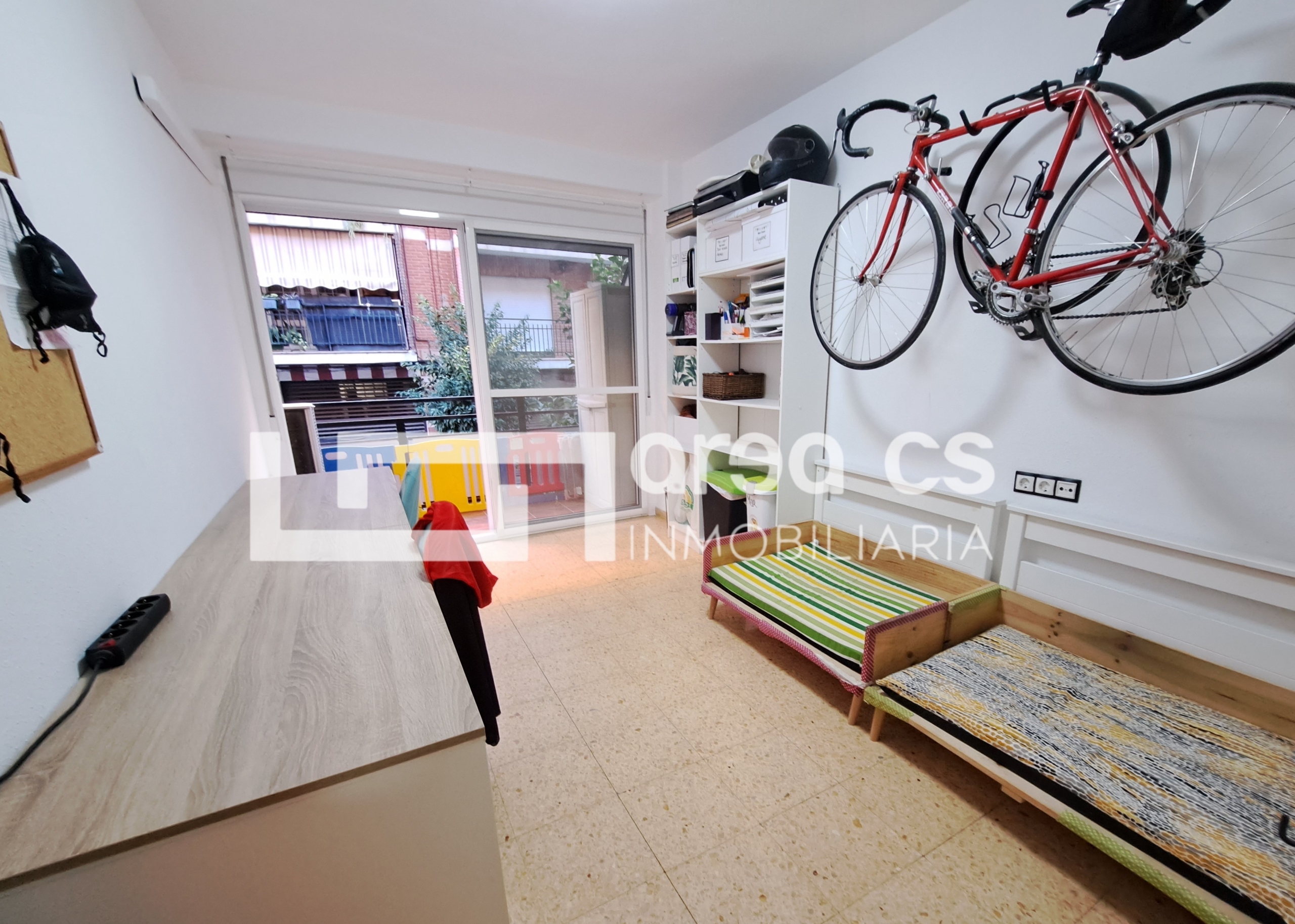 Este espacioso piso en primera planta cuenta con 4 dormitorios, 2 baños, terraza y 2 patios, ofreciendo un ambiente ideal para familias. El apartamento cuenta con una cocina totalmente equipada con nevera, lavadora y lavavajillas, horno y vitrocerámica. Además tiene un luminoso salón-comedor que se abre a una terraza corrida que a su vez tiene acceso desde uno de los dormitorios.